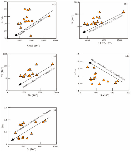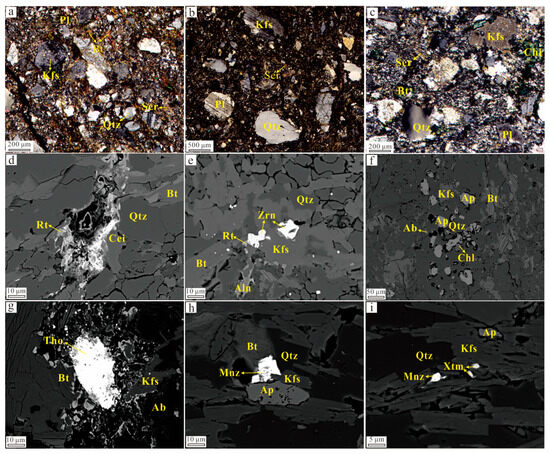 The origin of Mesozoic granites associated with the Dahutang W-Cu-Mo orefield in northern Jiangxi, which hosts the world’s second-largest tungsten deposit, remains a compelling subject despite extensive geochemical and geochronological studies. In this contribution, we present wolframite mineral and whole-rock geochemistry, as well as monazite and zircon U-Pb ages, for the Mesozoic granites to constrain our understanding of the petrogenesis of these granites and their coupling relationship with the mineralization. The following two magmatic phases and four types of rocks in the study area are identified: the early stage (152–147 Ma) biotite (G1) granites and the late stage (144–130 Ma) two-mica (G2),muscovite (G3), and albite (G4) granite series. These two magmatic phases are temporally coincident with two mineralization stages (~150 Ma and 144–139 Ma). All the Mesozoic granites share the characteristics of high silica content, peraluminosity (A/CNK > 1.1), and low Zr + Nb + Ce + Y values (<200 ppm); they are derived from the partial melting of a Proterozoic crustal source and classified as S-type granites. Specifically, the G1 granites are characterized by relatively high MgO (~0.5%), CaO (~1%), and low P