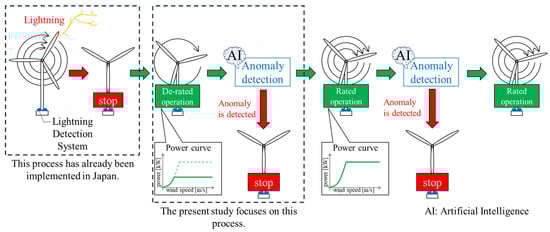 Many countries are actively promoting the large-scale deployment of wind power generation, both onshore and offshore. However, damage to wind turbines caused by winter lightning has become a growing concern in Japan. Japan has made efforts since an early stage to establish legal frameworks for reducing lightning damage; nevertheless, lightning damage to wind turbines remains a problem that has not been completely eradicated. After a wind turbine has been struck by lightning, it is restarted only after its structural integrity has been verified; however, the current method relies on visual inspection by workers, making accurate and rapid inspections difficult. One approach to solving this problem is to use anomaly detection techniques based on SCADA data. Research is currently underway to implement this approach. However, anomaly detection methods based on SCADA data have been criticized for their limited ability to accommodate multiple operating modes, including de-rated operation. In this study, we propose the “scaled power curve” as a robust feature that is less affected by operating modes, with its effectiveness verified through anomaly detection. This method showed improved anomaly detection accuracy compared to using the original power curve as a feature; moreover, in the present case, the method remained effective under de-rated operation. By using this feature, it is expected that a lightning damage detection model can be developed, contributing to improved availability of wind turbines. Full article