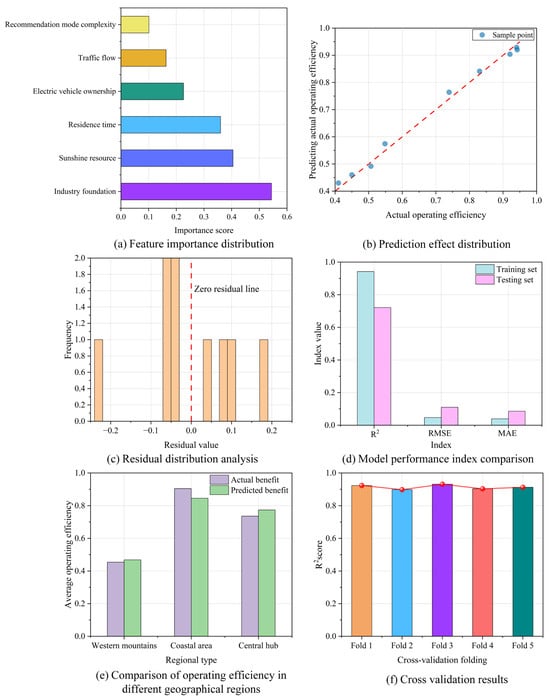 Against the background of the acceleration of the integration of the “double carbon” target and transportation energy, the green transformation and business model innovation of highway service areas, as a high-energy-consumption traffic node, are becoming more and more urgent. However, the existing research focuses on a single technology path, and lacks a systematic quantitative evaluation of the “PV–charging–new format” coordination mechanism and its operating efficiency. Therefore, this paper proposes a collaborative framework that integrates photovoltaic power generation, new energy charging piles, and diversified new formats, and introduces a random forest regression algorithm. Based on the actual operation data of the Guangxi expressway service area, the synergistic effect and regional heterogeneity of multiple factors are systematically evaluated. The results show that a photovoltaic system can reduce the unit electricity price by 25–35%, and the investment recovery period is about 7 years. When the penetration rate of charging piles increases to 35%, the annual income can reach CNY 3.285 million, and the return on investment increases to 2.3 times when the utilization rate exceeds 80%. The new business combination can increase the average daily income by 13.3–26.7%. At the same time, the coordinated implementation of the three elements can achieve an annual net income increase of 27–32%, which is better than the linear superposition of the benefits of a single measure. In addition, the analysis of regional heterogeneity shows that the photovoltaic benefit in the western mountainous area is outstanding, the charging benefit in the coastal area is significant, and the comprehensive benefit in the central hub area is the best. This study provides a quantitative basis to support decisions on the differentiated development path of expressway service areas in the background of traffic–energy integration. Full article