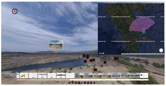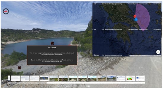 The growing demand for Critical Raw Materials (CRMs) requires mining practices that align with sustainability and environmental, social, and governance (ESG) principles, while mining training increasingly benefits from advanced digital tools. Virtual Reality (VR) can provide high-resolution site representations that support both interactive learning and data-oriented analysis without operational risk. This study presents a VR-based framework for the quantitative assessment of pit lake rehabilitation using Virtual Excursions (VEs) developed from panoramic imagery and supported by machine-learning correction. High-resolution 360° panoramic images were used to extract geometric characteristics of a rehabilitated pit lake at the LARCO GMMSA Euboea mine site, Greece, including surface area, shoreline length, mean diameter, and maximum diameter. These image-derived estimates were validated against ground-truth data from field surveys and mine-closure documentation. To reduce systematic deviations associated with panoramic image measurements, a supervised multiple linear regression model was applied as a correction step. Validation based on Root Mean Square Error (RMSE) and the coefficient of determination (R2) showed substantial improvement of the corrected estimates relative to the uncorrected image-based measurements. The results demonstrate that panoramic VR imagery can support site-specific quantitative environmental assessment in addition to its educational value. Although the present findings are limited to a single pit lake case study, the proposed workflow provides a structured basis for integrating immersive visualization, image-based measurement, and regression-based correction in post-mining rehabilitation assessment. Full article