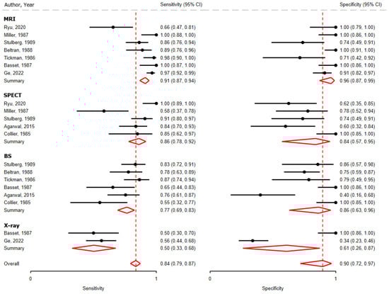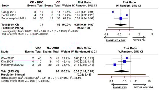 Background/Objectives: Diagnostic evaluation and management of nontraumatic osteonecrosis of the femoral head (ONFH) vary substantially. This systematic review was conducted to inform development of the Association Research Circulation Osseous (ARCO) clinical practice guideline for diagnosis and treatment of ARCO stages I to III ONFH. Methods: We searched MEDLINE, EMBASE, Web of Science, SCOPUS, Global Index Medicus, and the Cochrane Library for studies evaluating imaging modalities and treatments for adult ONFH. We assessed risk of bias using the QUADAS-2, the ROB-2, and the ROBINS-I tools; conducted meta-analyses using random-effects regression; and evaluated certainty of evidence using GRADE methodology. Results: Among 36 included studies, 18 addressed diagnostic test accuracy and 18 addressed comparative effectiveness of treatments. Magnetic resonance imaging (MRI) demonstrated the highest pooled sensitivity (0.91; 95% confidence interval (CI), 0.87 to 0.94) and specificity (0.96; 95% CI, 0.87 to 0.99) for ONFH diagnosis. Bone marrow edema and grade 2+ joint effusion on MRI differentiated symptomatic versus asymptomatic disease. Computed tomography and MRI better detected subchondral fractures than plain radiography. Very low-grade evidence suggested lower rates of femoral head collapse with core decompression plus bone marrow concentrate compared with core decompression alone (pooled relative risk [RR], 0.55; 95% CI, 0.36 to 0.83), and with vascularized versus non-vascularized bone grafting (RR, 0.35; 95% CI, 0.14 to 0.84) over a ≤5-year follow-up. Based on three non-comparative case series, osteotomies might have a lower risk of collapse over a 10- to 20-year follow-up, but this needs to be evaluated in future comparative research. Inconsistent outcome reporting hindered treatment outcome pooling. There were no comparative studies that evaluated observation only versus intervention in asymptomatic disease or strategies for monitoring treatment response. Conclusions: Evidence supporting optimal imaging modalities and early joint-preserving interventions remains limited and predominantly observational, underscoring the need for high-quality comparative studies with consistently defined core outcomes to guide clinical decision-making. Full article