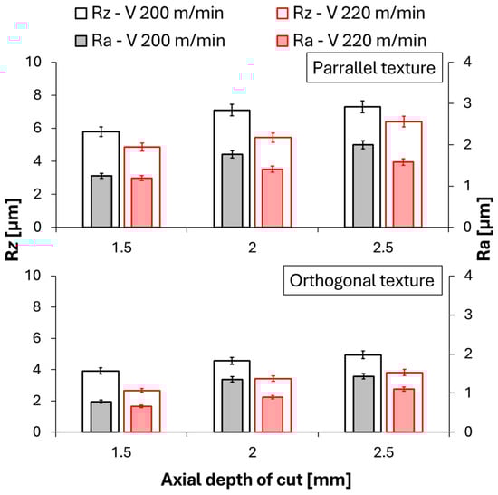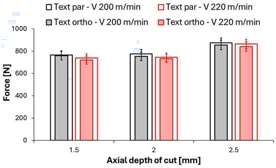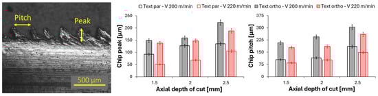 Machining of medium-carbon steels, such as AISI 1050, poses a significant challenge in terms of achieving stable cutting conditions, controlled chip evacuation and high surface integrity, in particular when full-face milling is performed under elevated material removal rates. The tool surface engineering approach, particularly laser-induced micro-texturing, comprises a promising route toward modifying the tribological conditions at the tool–chip interface, thus affecting friction, heat generation, chip formation and the resultant surface finish. This study investigates the combined effects of cutting speed, axial depth of cut and tool micro-texture orientation (parallel versus orthogonal to the chip flow direction) on machining performance under wet conditions. In addition to the experimental analysis of cutting forces, chip morphology and surface roughness, this work integrates a full factorial Design of Experiments, regression modeling, and ANOVA to quantify the statistical significance of each factor and to identify dominant interactions. The regression models show strong predictive capability across all measured responses, while the ANOVA confirms the axial depth of cut and tool texture orientation as the most influential parameters. Multi-objective optimization by Pareto analysis further underlines the superiority of orthogonal micro-texturing, which consistently reduces the cutting forces and improves surface quality while promoting controlled chip segmentation. The results provide quantitative and statistically validated evidence of the enhancement of lubrication effectiveness, reduction in interface friction, and stabilization in chip formation provided by the micro-textured tools. Overall, the findings contribute to the development of data-driven machining strategies and surface-engineered cutting tools in view of improved productivity, energy efficiency and surface integrity in advanced manufacturing applications. Full article