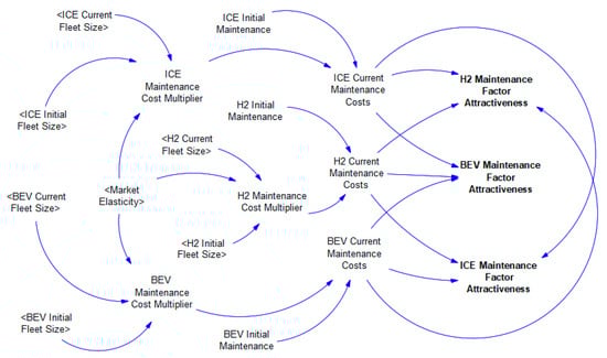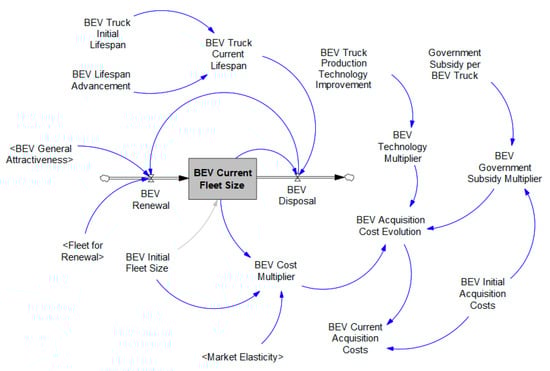 Decarbonizing heavy-duty freight transport is essential for achieving climate neutrality targets. Although internal combustion engine (ICE) trucks currently dominate logistics, they contribute substantially to greenhouse gas emissions. Zero-emission alternatives, such as battery electric vehicles (BEVs) and hydrogen fuel cell vehicles (H2), provide different decarbonization pathways; however, their relative roles remain contested, particularly in small economies. While BEVs benefit from technological maturity and declining costs, hydrogen offers advantages for high-payload, long-haul operations, especially within energy-intensive cold supply chains. The aim of this paper is to examine the gradual transition from ICE trucks to hydrogen-powered vehicles with a specific focus on cold-chain logistics, where reliability and energy intensity are critical. The hypothesis is that applying a system dynamics forecasting approach, incorporating investment costs, infrastructure coverage, government support, and technological progress, can more effectively guide transition planning than traditional linear methods. To address this, the study develops a system dynamics economic model tailored to the structural characteristics of a small economy, using a European case context. Small markets face distinct constraints: limited fleet sizes reduce economies of scale, infrastructure deployment is disproportionately costly, and fiscal capacity to support subsidies is restricted. These conditions increase the risk of technology lock-in and emphasize the need for coordinated, adaptive policy design. The model integrates acquisition and maintenance costs, fuel consumption, infrastructure rollout, subsidy schemes, industrial hydrogen demand, and technology learning rates. It incorporates subsystems for fleet renewal, hydrogen refueling network expansion, operating costs, industrial demand linkages, and attractiveness functions weighted by operator decision preferences. Reinforcing and balancing feedback loops capture the dynamic interactions between fleet adoption and infrastructure availability. Inputs combine fixed baseline parameters with variable policy levers such as subsidies, elasticity values, and hydrogen cost reduction rates. Results indicate that BEVs are structurally more favorable in small economies due to lower entry costs and simpler infrastructure requirements. Hydrogen adoption becomes viable only under scenarios with strong, sustained subsidies, accelerated station deployment, and sufficient cross-sectoral demand. Under favorable conditions, hydrogen can approach cost and attractiveness parity with BEVs. Overall, market forces alone are insufficient to ensure a balanced zero-emission transition in small markets; proactive and continuous government intervention is required for hydrogen to complement rather than remain secondary to BEV uptake. The novelty of this study lies in the development of a system dynamics model specifically designed for small-economy conditions, integrating industrial hydrogen demand, policy elasticity, and infrastructure coverage limitations, factors largely absent from the existing literature. Unlike models focused on large markets or single-sector applications, this approach captures cross-sector synergies, small-scale cost dynamics, and subsidy-driven points, offering a more realistic framework for hydrogen truck deployment in small-country environments. The model highlights key leverage points for policymakers and provides a transferable tool for guiding freight decarbonization strategies in comparable small-market contexts. Full article