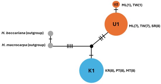 Hopea celebica Burck is an endangered dipterocarp endemic to Sulawesi, Indonesia, occurring in two ecologically contrasting habitats: karst and ultrabasic forests. These environments differ markedly in soil composition and topography, potentially driving ecological specialization and genetic divergence. To investigate the genetic variation and genetic structure of this species, we applied newly developed microsatellite (SSR) markers, together with the chloroplast DNA sequences of the trnL–trnF region. Genotypes at 15 SSR loci were determined for 255 individuals collected from six populations covering the range of the species’ distribution across karst and ultrabasic forests. Genetic diversity was consistently higher in karst than in ultrabasic populations. DIYABC and VarEff analyses revealed a historical bottleneck and earlier recovery in the karst populations. Analysis of molecular variance (AMOVA) revealed that 35% of the genetic variation was partitioned between habitat types (FRT = 0.345, p = 0.001). Bayesian clustering (STRUCTURE), principal coordinate analysis (PCoA), and UPGMA dendrograms consistently showed two distinctive clusters corresponding to habitat type. Chloroplast haplotypes differed between populations in the karst and ultrabasic forests. These results suggest that populations in the karst and ultrabasic forests have undergone a long history of differentiation without migration. The strong habitat-related genetic structure likely reflects ecological isolation and early-stage speciation. We recommend treating the karst and ultrabasic populations as distinct conservation units to preserve the evolutionary potential and adaptive capacity of H. celebica under ongoing environmental change. Full article