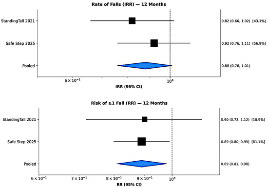 Falls are a leading cause of morbidity and loss of independence among community-dwelling older adults. Mobile health (mHealth) application (app)-based interventions have emerged as a scalable approach to fall prevention. However, evidence from individual trials remains fragmented, underscoring the need for a comprehensive quantitative synthesis. This systematic review and meta-analysis examined whether mHealth app-based interventions reduce fall incidence and improve fall-related risk factors. A systematic search of PubMed, EMBASE, CENTRAL, and Web of Science identified randomized controlled trials meeting predefined eligibility criteria. Nine trials comprising 3437 participants were included, with dual-independent data extraction, quality appraisal, and assessment of evidence certainty. Compared with usual care or control conditions, mHealth app-based interventions reduced fall risk by 11% over 12 months (risk ratio 0.89, 95% CI 0.81–0.98), corresponding to an absolute risk reduction of 6.6%. The pooled reduction in fall rate, however, did not reach statistical significance. Secondary analyses showed moderate improvements in balance, strength, and mobility, a significant decrease in fear of falling, and no serious adverse events. Overall, mHealth app-based interventions provide modest but meaningful benefits and may complement comprehensive fall-prevention strategies for older adults. Full article