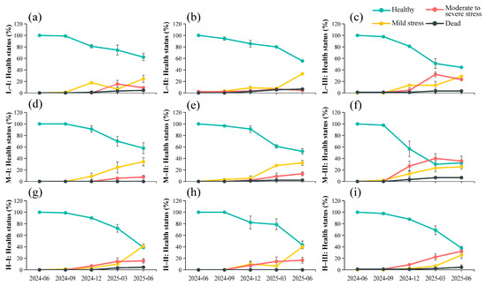 p < 0.01). From light to moderate degradation, biomass and relative cover of the dominant species decreased significantly, while the phyllosphere bacterial community appeared more strongly influenced by the host than by environmental deterioration; the community microbial turnover index (CMTB) and microbial resistance potential increased slightly but non-significantly (