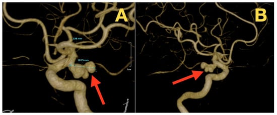Conclusions: The goal of this report is to demonstrate how a ruptured, morphologically complex ICA-PCom aneurysm may present with preserved neurologic function, thereby enabling the study of clinical–anatomical associations before secondary injury mechanisms intervene. The relationship between the configuration of the patient’s symptoms, geometry of the aneurysm and pattern of hemorrhage within the cisterns offers insight into a rare rupture pattern observed during routine clinical experience. Through complete anatomical analysis, timely microsurgical reconstruction and consistent follow-up, the authors were able to achieve long-term recovery of this particular patient. Continued advancements in vascular imaging techniques, aneurysmal wall modeling, and postoperative monitoring will likely help clarify the underlying mechanism(s) responsible for such presentations.