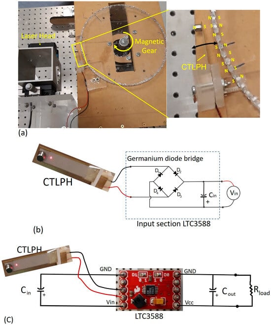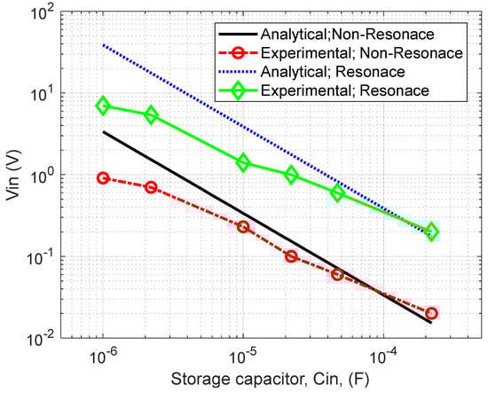 This research aims to establish design guidelines for a cantilever triple-layer piezoelectric harvester (CTLPH) with tip mass and tip excitation, operating under resonance conditions. The guideline is derived by combining constitutive equations with Euler–Bernoulli beam theory to identify the effective parameters of the CTLPH and, subsequently, the storage voltage after rectification using a germanium diode bridge. The analysis shows that excitation frequency, piezoelectric coefficients, geometrical dimensions, and the mechanical properties of the layers all significantly influence CTLPH performance. The effects of storage capacitance and excitation frequency were experimentally validated through the design, fabrication, and testing of a prototype. Furthermore, the LTC3588 energy storage module was employed to store the generated charge from resonance motion. An advanced non-contact optical method was employed to determine the bending stiffness of the CTLPH. The output power after the energy storage module was measured across a range of resistive loads at frequencies near the resonance condition (f = 65 Hz). Results demonstrate that both excitation frequency and external resistance affect the maximum harvested power. The developed CTLPH achieved an optimum output power of 46.18 ± 0.98 μW at an external resistance of 3 kΩ, which is sufficient to supply micropower sensors. Full article