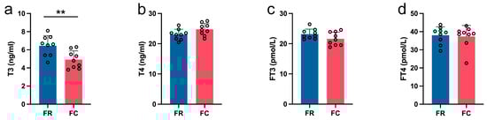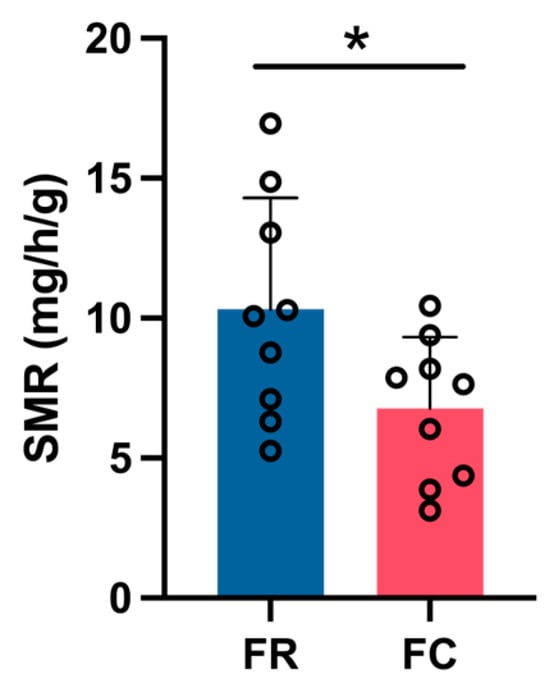Diet form is increasingly recognized as a welfare-relevant factor in intensive aquaculture, yet the effects of feed cooking on fish behavioral and physiological welfare remain poorly characterized. Juvenile southern catfish (Silurus meridionalis; 6.18 ± 0.52 g) were reared for 6 weeks in an indoor recirculating aquaculture system and fed either raw grass carp (Ctenopharyngodon idella) muscle (fish fed raw muscle, FR) or cooked grass carp muscle (fish fed cooked muscle, FC; 15 min ramp to ~100 °C followed by 2–3 min at ~100 °C). Locomotor activity and anxiety-like behavior were assessed using the open-field test and an annular light–dark preference assay, respectively. Flow-through respirometry further revealed a significantly lower standard metabolic rate (SMR) in FC fish than in FR fish, decreasing from 10.30 to 6.83, which represents a 33.7% reduction. Endocrine and biochemical analyses showed that cooking significantly decreased serum total triiodothyronine (T3) by 23.8%, whereas routine serum biochemical indices remained unchanged. In brain tissue, dopamine (DA) was significantly reduced by 7.2% in the FC group, and RT-qPCR analysis of dopamine-related genes further showed a significant downregulation of the rate-limiting synthesis gene th. These results indicate that cooking primarily downshifts the activity-energy axis in southern catfish and is accompanied by coordinated thyroid and dopaminergic changes. To our knowledge, this is the first integrated study to evaluate the behavioral, metabolic, and neuroendocrine effects of cooked feed in S. meridionalis, providing a short-term phenotypic baseline for assessing welfare-relevant feeding scenarios in aquaculture. Full article
