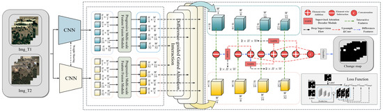 Change detection in remote sensing imagery plays a vital role in land use analysis, disaster assessment, and ecological monitoring. However, existing remote sensing change detection methods often lack a structured and tightly coupled interaction paradigm to jointly reconcile multi-scale representation, bi-temporal discrimination, and fine-grained boundary modeling under practical computational constraints. To address this fundamental challenge, we propose a Multi-scale Interaction and Supervised Attention Network (MISANet). To improve the model’s ability to perceive changes at multiple scales, we design a Progressive Multi-Scale Feature Fusion Module (PMFFM), which employs a progressive fusion strategy to effectively integrate multi-granular cross-scale features. To enhance the interaction between bi-temporal features, we introduce a Difference-guided Gated Attention Interaction (DGAI) module. This component leverages difference information between the two time phases and employs a gating mechanism to retain fine-grained details, thereby improving semantic consistency. Furthermore, to guide the model’s focus on change regions, we design a Supervised Attention Decoder Module (SADM). This module utilizes a channel–spatial joint attention mechanism to reweight the feature maps. In addition, a deep supervision strategy is incorporated to direct the model’s attention toward both fine-grained texture differences and high-level semantic changes during training. Experiments conducted on the LEVIR-CD, SYSU-CD, and GZ-CD datasets demonstrate the effectiveness of our method, achieving F1-scores of 91.19%, 82.25%, and 88.35%, respectively. Compared with the state-of-the-art BASNet model, MISANet achieves performance gains of 0.50% F1 and 0.85% IoU on LEVIR-CD, 2.13% F1 and 3.02% IoU on SYSU-CD, and 1.28% F1 and 2.03% IoU on GZ-CD. The proposed method demonstrates strong generalization capabilities and is applicable to various complex change detection scenarios. Full article