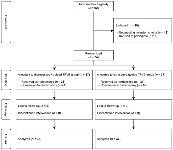 Results: In 12 cases (50%), thulium laser-assisted resection was performed using uniportal video-assisted thoracic surgery (VATS), and in the other cases (12, 50%), a (mini)thoracotomy access was adopted. In the thoracotomy group, the mean duration of surgery was 95 ± 57.7 min; meanwhile, it was 73.5 ± 35.5 in the uniportal VATS group. At the univariate analysis, this difference resulted to be statistically significant (