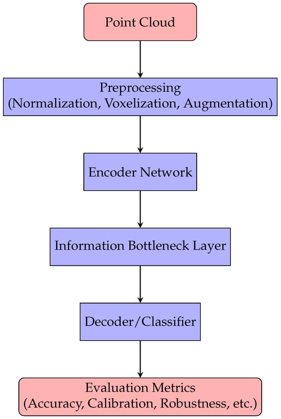 Accurate semantic interpretation of 3D point clouds is essential for the digital transformation of architecture, engineering, and construction (AEC). Building Information Modeling (BIM) depends on both geometric precision and semantic consistency, yet raw scans are typically noisy, redundant, and computationally expensive to process. This work presents an Information Bottleneck (IB) formulation that regularizes latent features to preserve only task-relevant information, yielding compact and interpretable representations within point-based neural networks. Our method, named IB-PC (Information Bottleneck for Point Clouds), introduces an Information Bottleneck (IB) layer as an auxiliary regularization task alongside supervised prediction, encouraging information compression and improving model robustness. Evaluations are conducted on two representative benchmarks, Semantic3D (outdoor) and TUM RGB-D (indoor) across, five criteria: (i) segmentation accuracy, (ii) calibration, (iii) robustness to noise and occlusion, (iv) computational efficiency, and (v) structural fidelity of architectural elements. The IB-regularized model consistently improves mean Intersection over Union (mIoU), overall accuracy, and macro F1, while reducing Expected Calibration Error (ECE) and Negative Log-Likelihood (NLL). The model remains stable under noise, occlusion, and varying point densities, and yields more consistent segmentation of architectural components such as walls, floors, and columns. These improvements are achieved with roughly 30% fewer FLOPs and reduced memory consumption, demonstrating the method’s efficiency and suitability for large-scale scan-to-BIM and digital twin applications. Full article