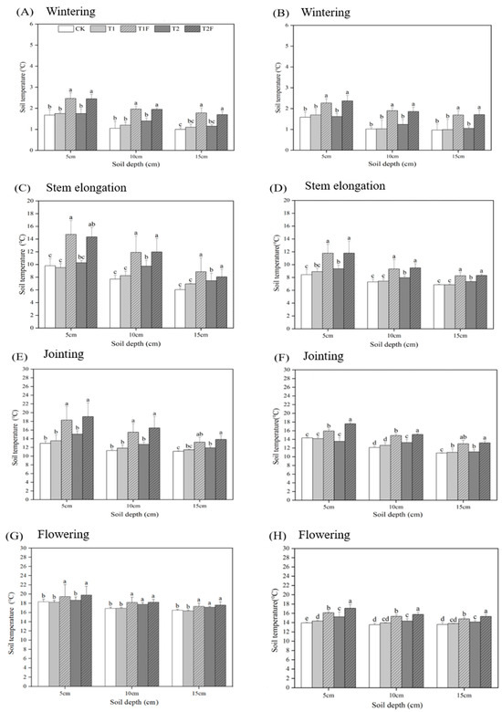 Delayed sowing has become a key constraint on winter wheat production in the Guanzhong Plain, Shaanxi Province, China, due to the widespread adoption of late-maturing maize and the delayed harvest of preceding crops. A two-year field experiment was conducted on the Guanzhong Plain to elucidate the physiological mechanisms behind yield reduction under delayed sowing and to explore potential mitigation strategies. The study examined the effects of sowing time (normal, 10-day delay, and 20-day delay) and plastic film mulching on yield components, crop development, and water and nitrogen uptake and use in winter wheat. Compared to normal sowing, delayed sowing significantly reduced grain yield (7.64–17.19%), spike number (11.65–21.3%), 1000-grain weight (5.2–9.05%), growth duration (7–16 d), dry matter accumulation (21.79–58.07%), and partial factor productivity of nitrogen fertilizer (7.64–17.2%). Late sowing slowed overall growth and development, shortened the growth cycle, and suppressed root system expansion and plant height, particularly under the 20-day delay. However, plastic film mulching under delayed sowing improved seedling emergence, root growth, tiller number (8.42–51.23%), water use efficiency (10.15–18.15%), and nitrogen productivity, thereby mitigating the adverse effects of delayed sowing on resource capture. Mulching enabled wheat sown with a 10-day delay to achieve yields comparable to normal-sown crops and alleviated 9.1–10.3% of the yield loss under a 20-day delay, although it did not fully restore yields to the non-delayed level. These findings provide practical insights for managing winter wheat under delayed sowing conditions. Full article