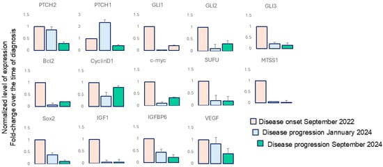 Basal cell carcinoma (BCC) is the most common skin cancer, predominantly affecting sun-exposed areas. It typically grows slowly and rarely metastasizes, though untreated cases can cause significant tissue destruction and morbidity. Its pathogenesis primarily involves dysregulation of the Hedgehog (HH) signaling pathway, mainly through mutations in PTCH1 or SMO genes, leading to chronic activation of downstream GLI transcription factors. Accordingly, current targeted therapies for locally advanced, unresectable, or metastatic BCC focus on SMO inhibition, using orally administered drugs such as vismodegib and sonidegib. Although these therapies have shown success, many patients develop resistance, with about 50% harboring mutated SMO. In numerous cases, genetic determinants (sometimes pre-existing) of resistance remain unidentified, complicating patient management. Here, we report a case of a 58-year-old female with advanced BCC who initially exhibited a favorable response to sonidegib but developed resistance after approximately one year. This resistance was not attributable to the acquired mutations in SMO but rather to intra-tumor heterogeneity and additional mutations in critical driver genes, including TP53, APC, FGFR1 and NOTCH1, which likely enable HH pathway inhibition. To our knowledge, this is the first report documenting a sonidegib resistance mechanism in BCC that is independent of HH pathway mutations. This case highlights the complexity of resistance mechanisms to HH inhibitors and underscores the critical need for comprehensive molecular tumor profiling prior to initiating targeted therapy. Full article