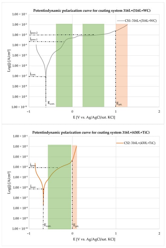 Grey cast iron brake discs are widely used in automotive applications due to their excellent thermal and mechanical properties. However, stricter environmental regulations such as Euro 7 demand improved surface durability to reduce particulate emissions and corrosion-related failures. This study evaluates multilayer coatings fabricated by Laser Metal Deposition (LMD) as a potential solution. Two multi-layer systems were investigated: 316L + (316L + WC) and 316L + (430L + TiC), which were primarily reinforced with ceramic additives to increase wear resistance, with their influence on corrosion being critically evaluated. Electrochemical tests in 5 wt.% NaCl solution (DIN 17475) revealed that the 316L + (316L + WC) coating exhibited the lowest corrosion current density and most stable passive behavior, consistent with the inherent passivation of the austenitic 316L matrix. In contrast, the 316L + (430L + TiC) system showed localized corrosion associated with micro-galvanic interactions, despite the chemical stability of TiC particles. Post-corrosion SEM and EDS confirmed chromium depletion and chloride accumulation at corroded sites, while WC particles exhibited partial dissolution. These findings highlight that ceramic reinforcements do not inherently improve corrosion resistance and may introduce localized degradation mechanisms. Nevertheless, LMD-fabricated multilayer coatings demonstrate potential for extending brake disc service life, provided that matrix–reinforcement interactions are carefully optimized. Full article