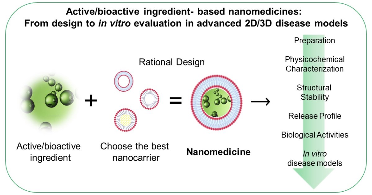 Active/Bioactive Ingredient-Based Nanomedicines: From Design to In Vitro Evaluation in Advanced 2D/3D Disease Models